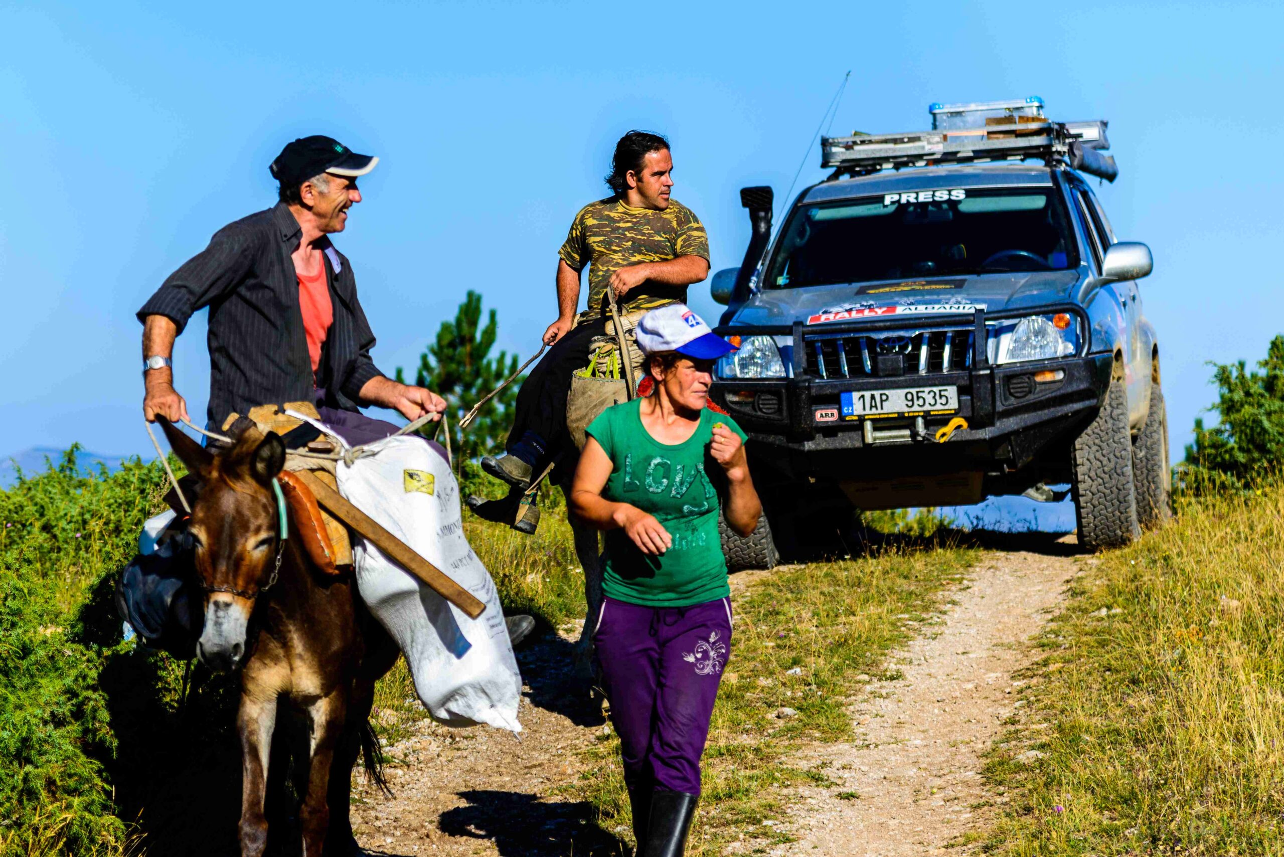 - Albánský premiér Sali Berisha a ředitelka odboru turistiky Julia Dhame (vpravo) zdraví závodníky na startu Rally Albania 2010.