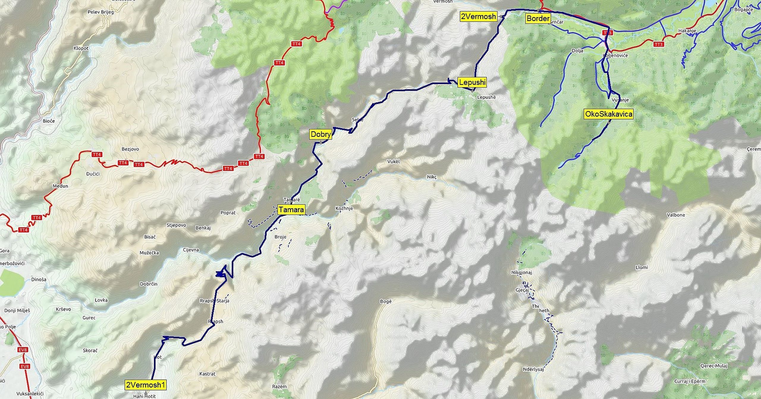 Trasa: Koplik – Hot – Rrapshë-Stare – Brojë – Tamarë – Lëpushë – hranice u Vermosh – Gusinje
