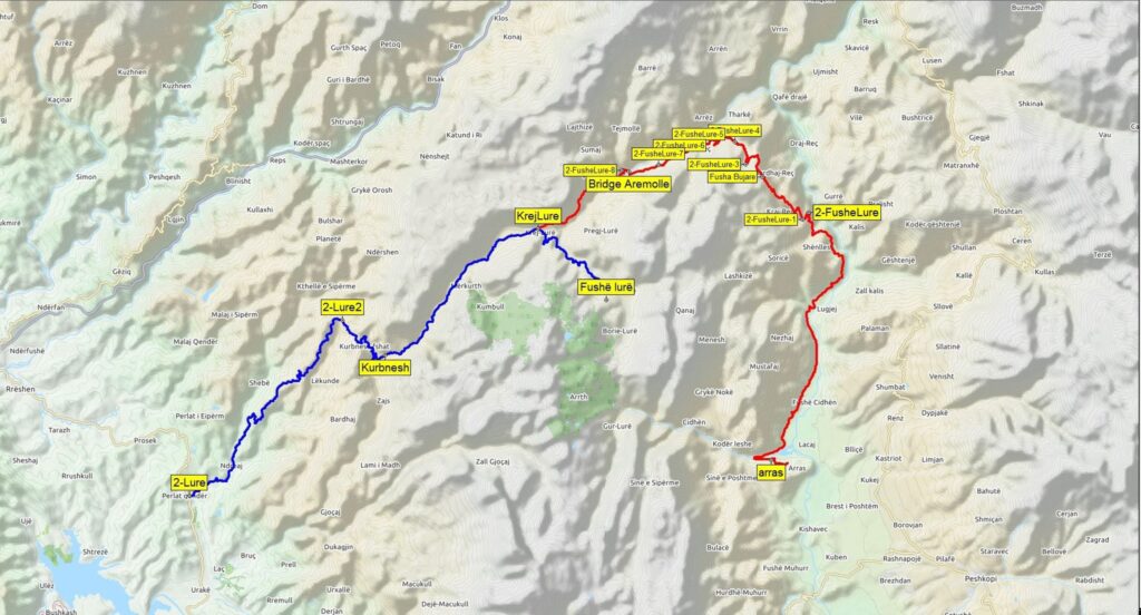Popis: Tuto trasu využijte jako přístupovou trasu k Lurským jezerům ze západu od Rreshen. Nebo od severu pro ty, pro které je trasa z Arres přes Cidhen do Fushë-Lurë byla příliš obtížná.