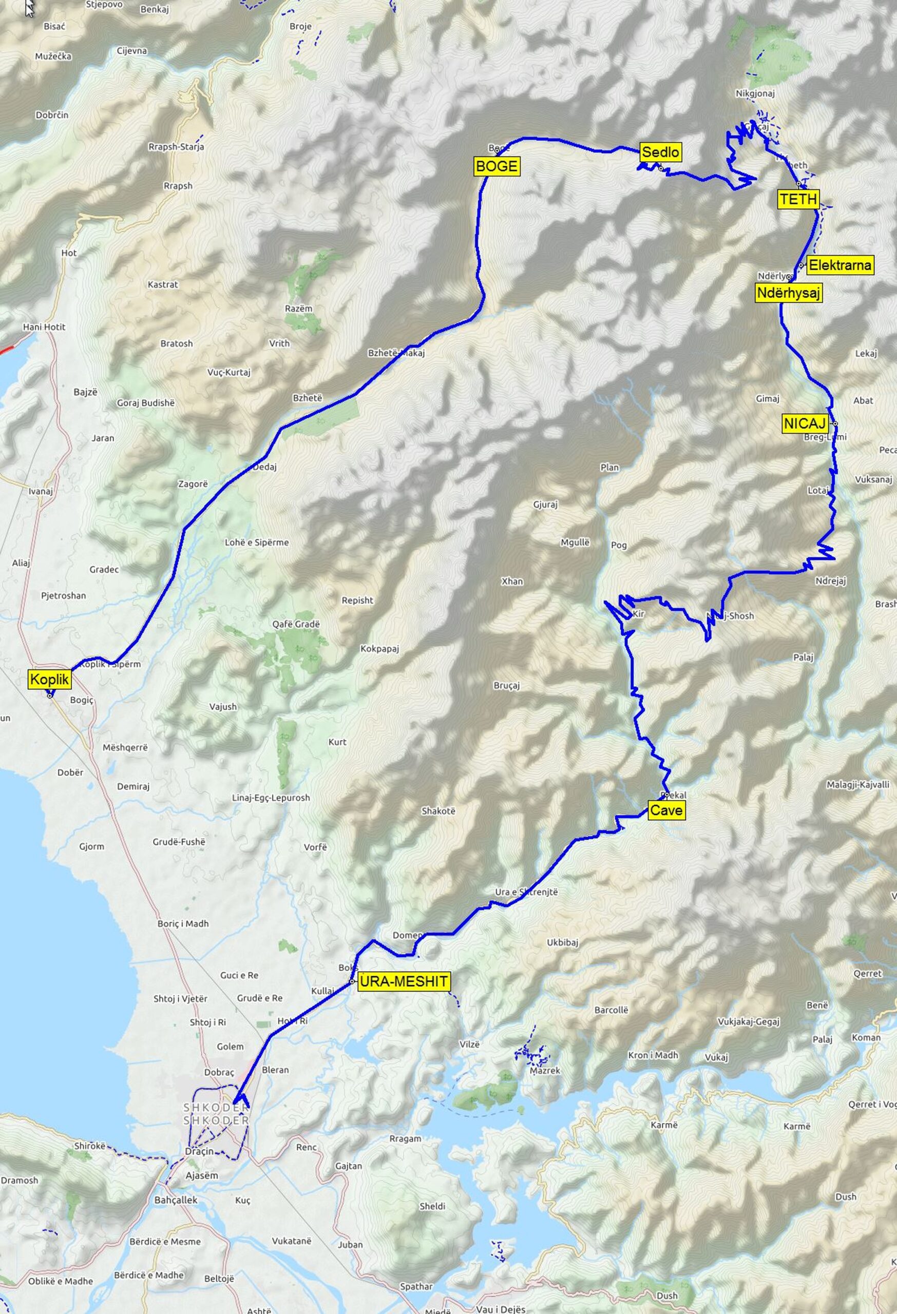 Trasa: Koplik – Bogë – Theth – Nicaj-Shalë – Lotaj – Kir – Prekal – Shkodër