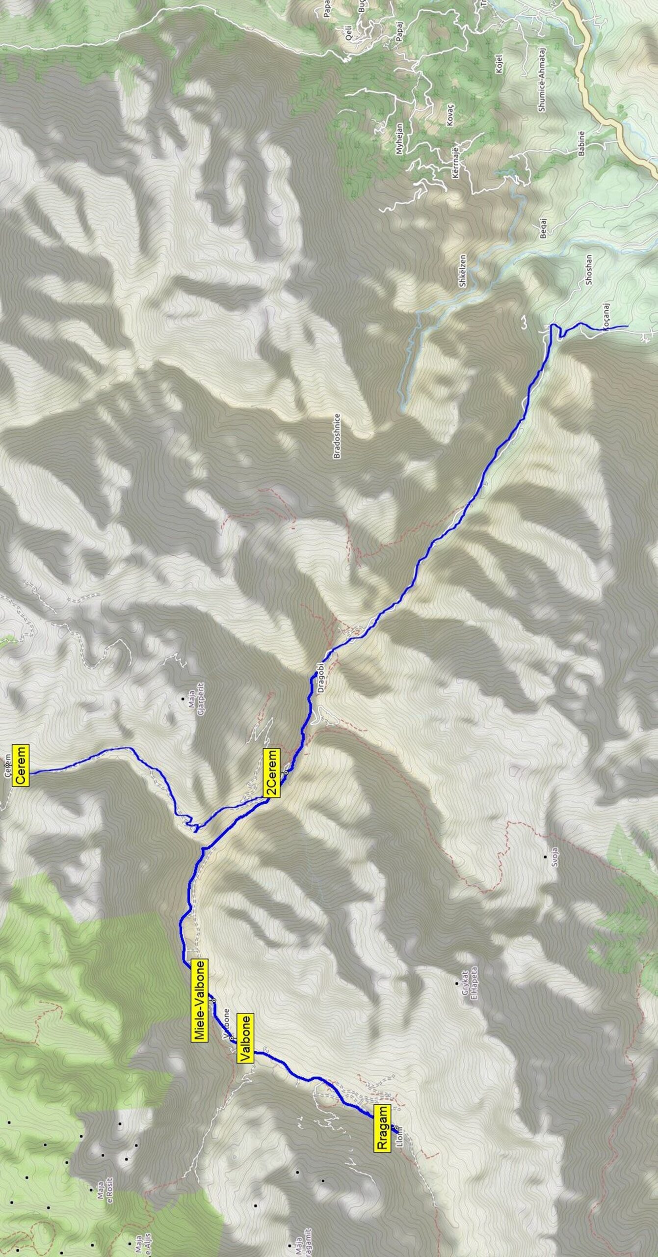 Trasa: Bajram Curri – Valbonë – Rragam a zpět