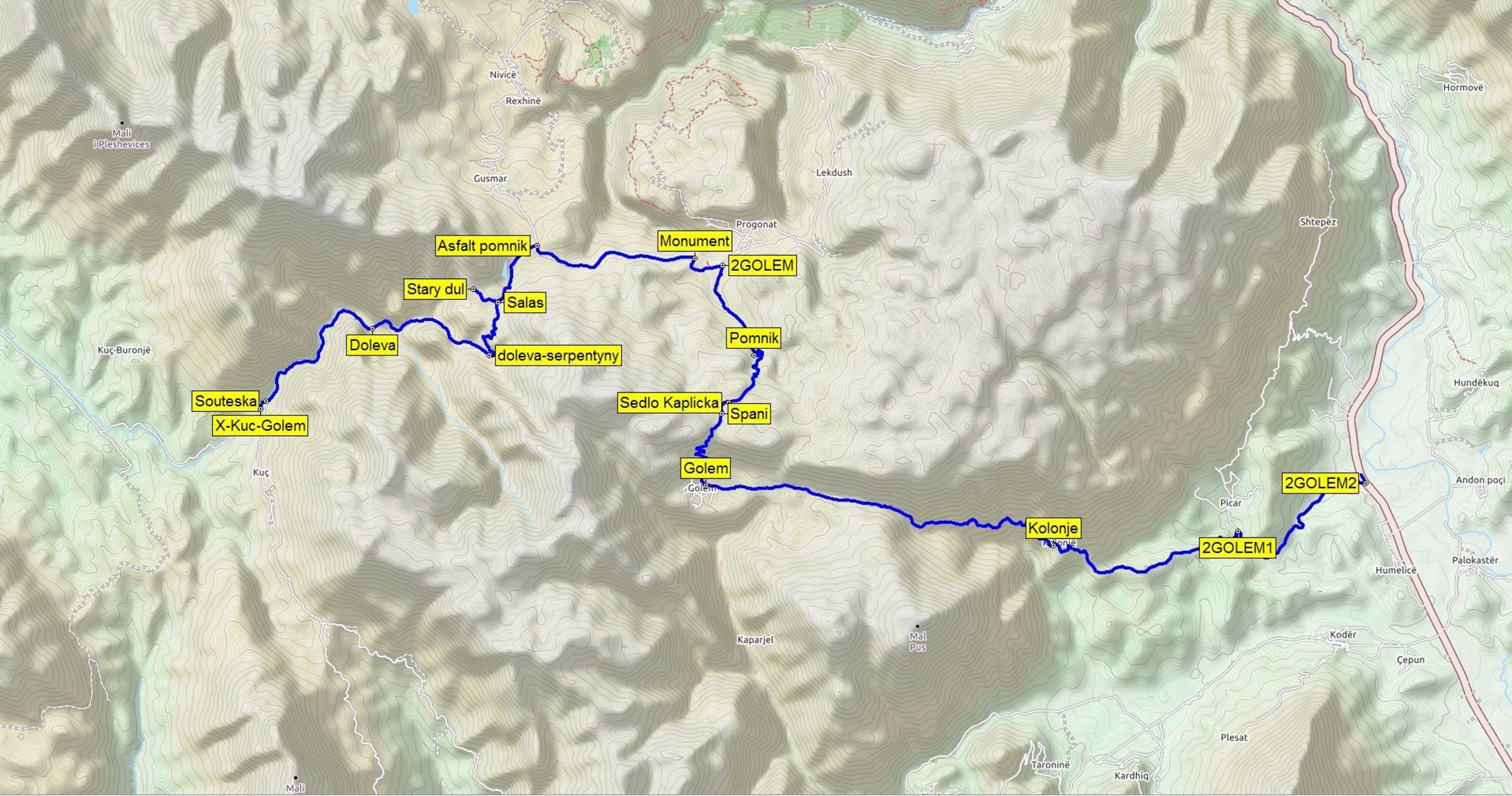 Trasa: Kuç – soutěska – důl – Progonat – Golem – Kolonjë – Picar – Homelice