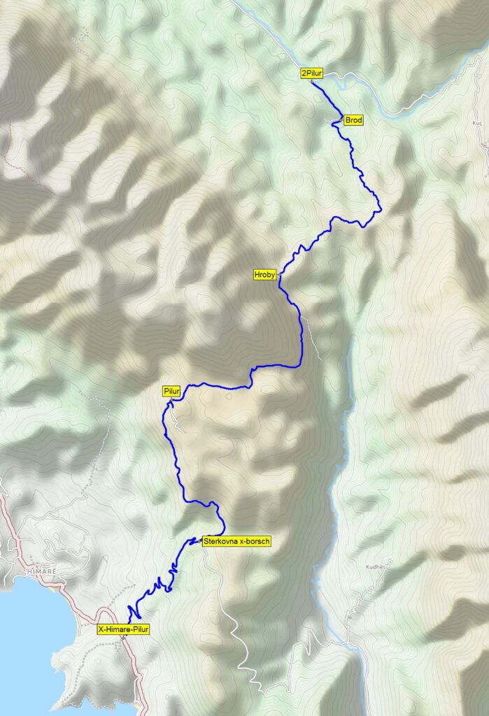 Popis: Zkratka z Himarë do Kuç. Z křižovatky před ponorkovou základnou odbočte vzhůru do hor po rozbité asfaltce (X-Himare–Pilur). Ve štěrkovně (Sterkovna x-borsch) doleva do vesnice Pi-lur. Tu projeďte přímo rovně a sledujte vedení vysokého napětí. Cesta byla postavena asi v roce 2011 pro stavbu tohoto vedení. Přes malou planinku pokračujete úbočím kopce kolem starých hrobů. Cesta se zakroutí v kopcích a přes brod a kolem vojenských domů se napojí na asfaltku mezi Kuç a Buronje.