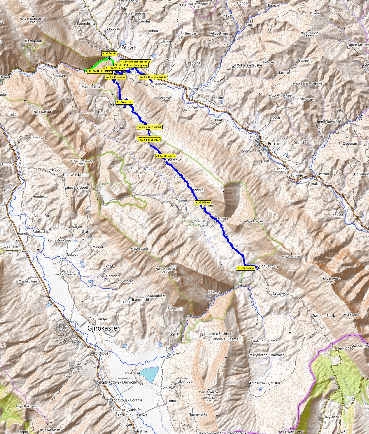 2Polican-bridge N40 17.235 E20 14.235 2Polican-BigStone N40 17.995 E20 13.050 2Polican-stone-quarry N40 17.833 E20 12.766 2Polican-pass N40 17.799 E20 12.320
