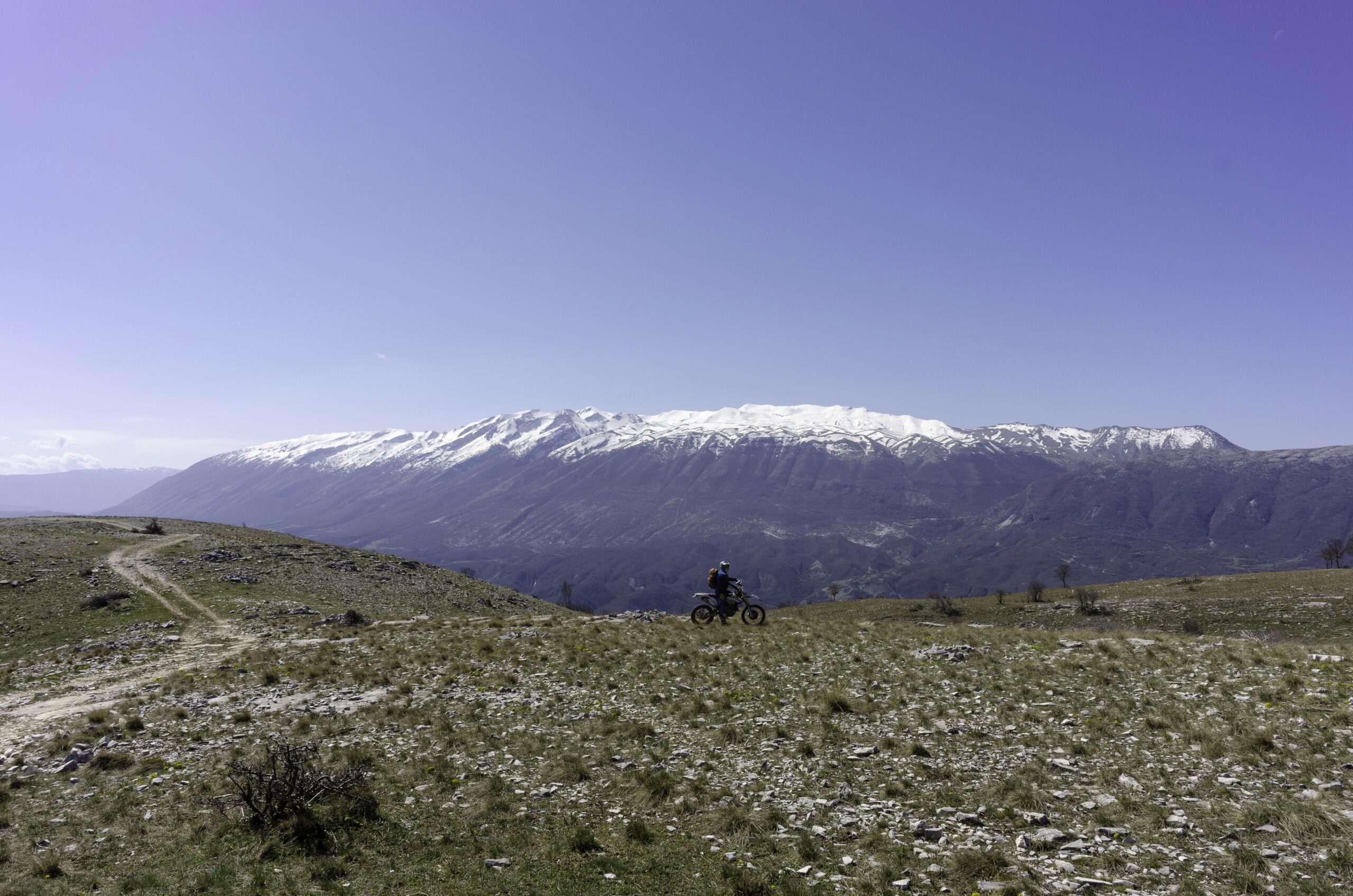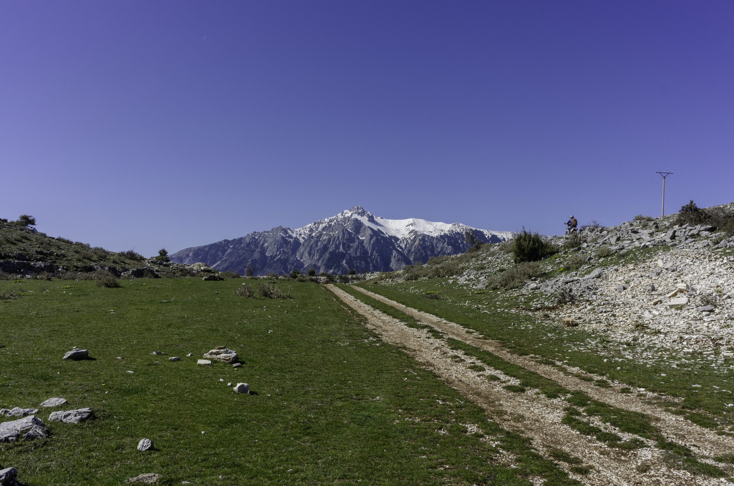 Ze sedla pořád vzhůru až na náhorní škrapovou planinu 1200 m vysoko. Cesta je jasně znatelná a vyjedete na náhorní planinu pohoří Nëmerçkë. V bodě (2onewaytrack) odbočte do údolíčka. Cesta je naprosto neznatelná. Pořád klesejte a buďte si jistí, že dokážete vyjet zpět. Narazíte na pěšinku, která padá strmě dolů. Pěšinka vede po úbočí a pak ostrou zatáčkou obchá-zí skálu. Toto je klíčové místo (onewaytrack), ale odsud se už stejně nevrátíte. Za skálou už jen sjezd suťoviskem a vyjedete na cestu na sedle (road-pass). Doprava je samota Doshnico a cesta je slepá. Doleva jedete směr Poliçan a u pomníku se napojíte na trasu 57. Pohoří Nëmerçkë. V Poliçan je super hospoda, pivo a občas mají i něco k jídlu.