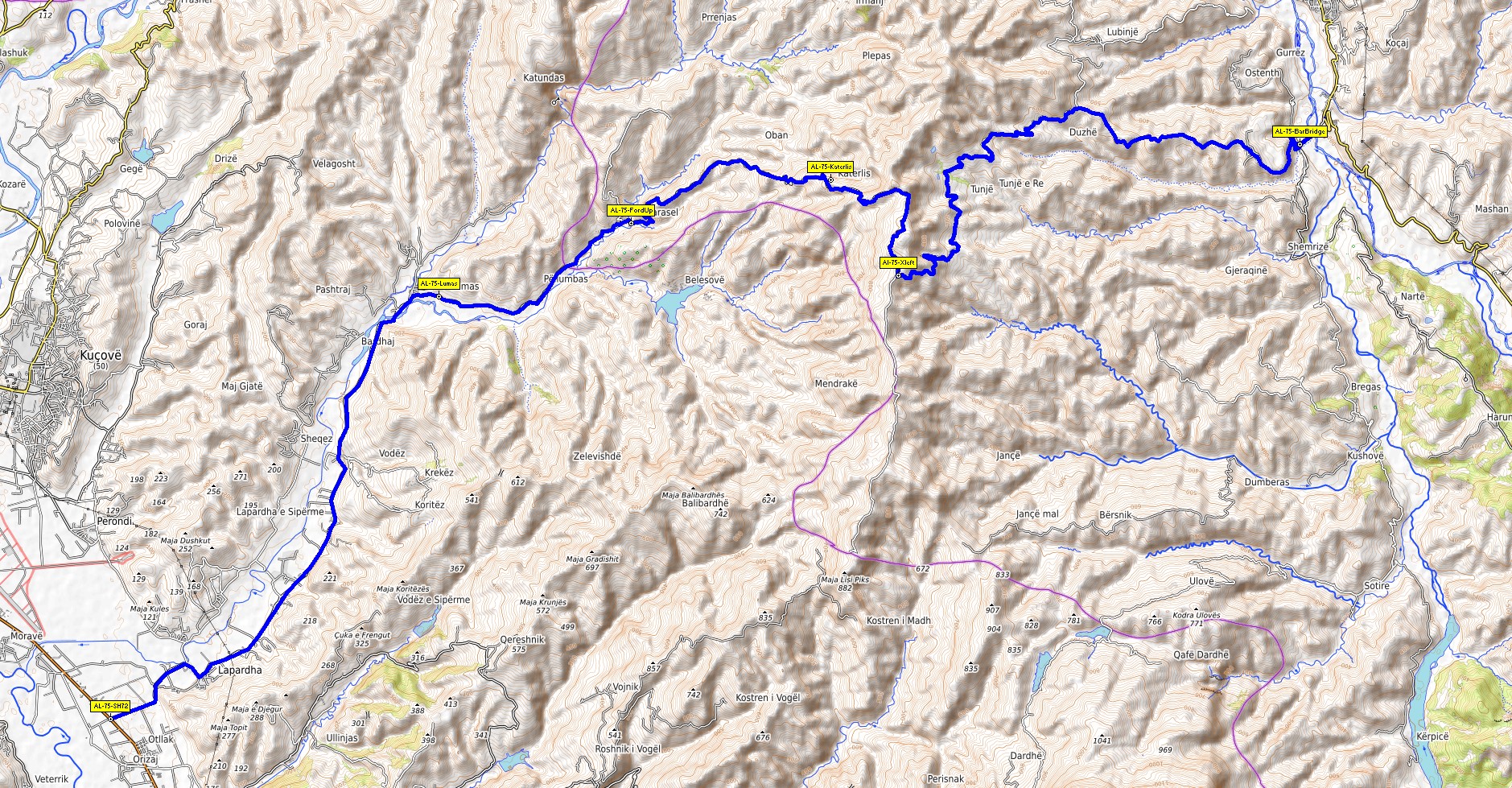 Popis: Hezká cesta nízkými kopečky pod třetí nejvyšší horou Albánie Partyzanit.