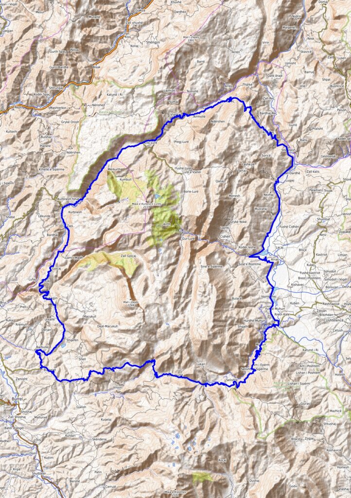Trasa: Arras – údolím Driny – Zall Reč – Armolle – Fushë Lurë – Kurbensh – Gjocaj – Dukagjin – Burgajet – Qafa Murrë – Selishtë – Fushë Muhurr – Arras